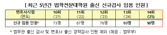 - 법학전문대학원 출신 변호사시험 합격자 90명 신규검사 임용