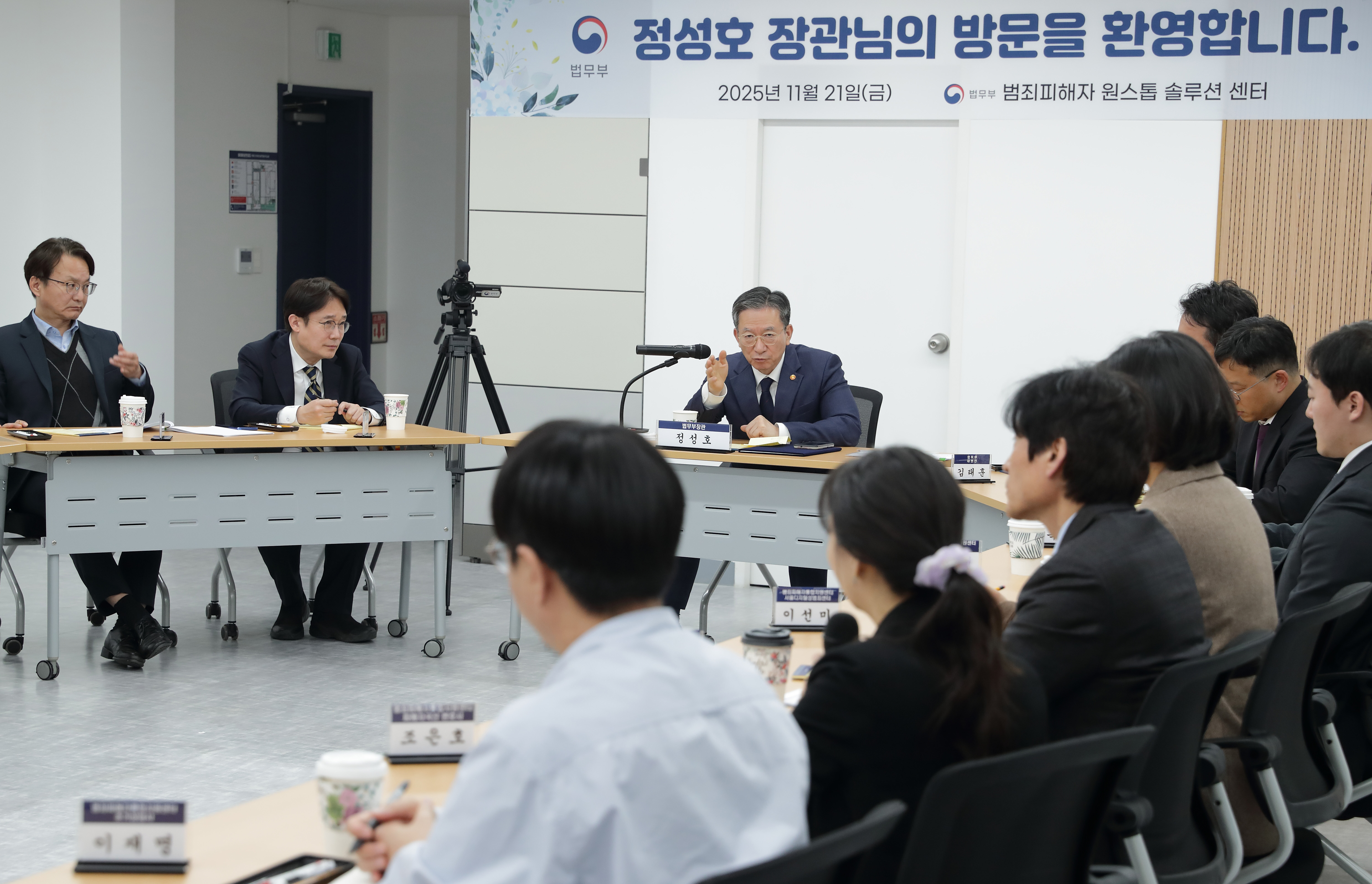 정성호 법무부 장관은 11월 21일(금) 16:00, 범죄피해자 원스톱 솔루션 센터에 방문하여 범죄피해자를 지원하는 일선 정책 현장을 점검하고, 직원들을 격려했다.고 밝혔다.