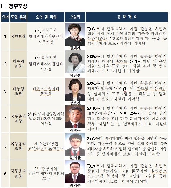 ▶ 2025. 범피해자보호․지원유공정부포상등 수상자 명단 및 공적